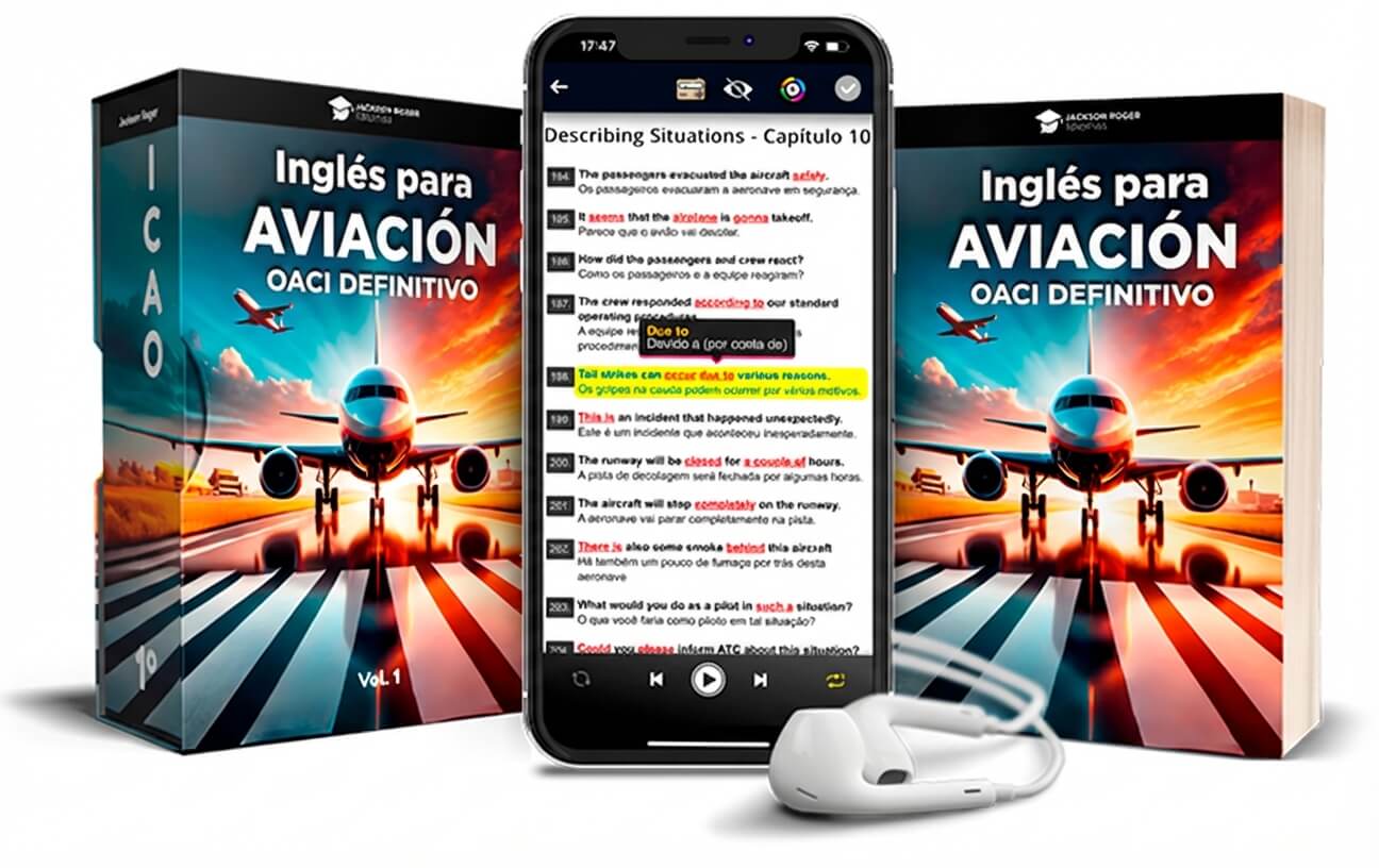 Además del libro, tendrás acceso a un portal exclusivo de audios, donde podrás escuchar todas las frases grabadas por locutores nativos, tanto con voz normal como con efecto de radio, simulando la comunicación real entre piloto y torre de control.