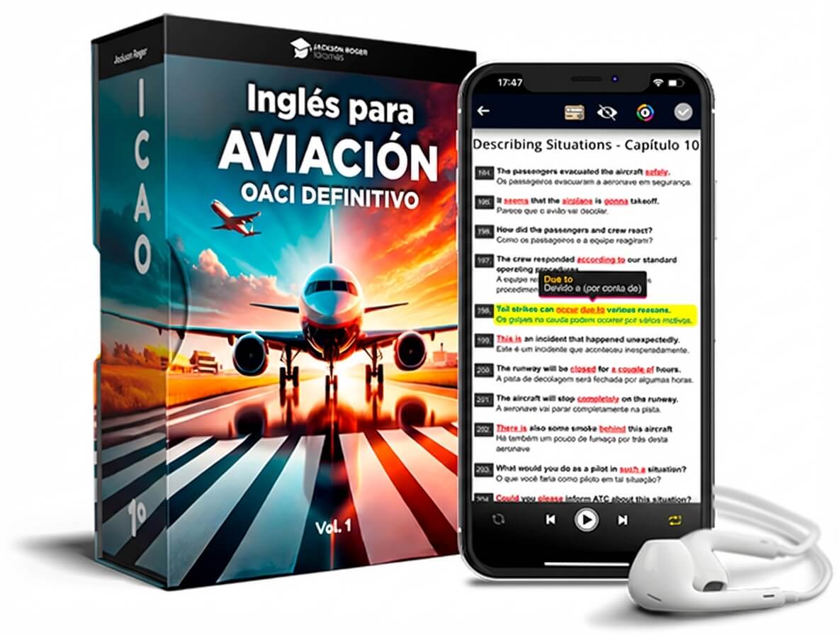Es un libro digital que contiene más de 800 de las frases en inglés más utilizadas para el examen de aviación de la OACI, con audio y traducción. Además del libro, recibirás acceso a un portal con audio, incluyendo efectos de radio.