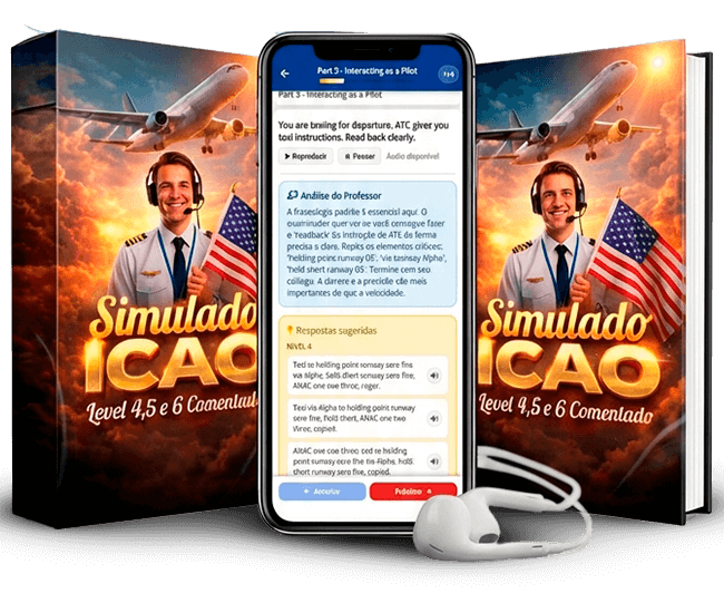Tenha acesso ao simulado ICAO com respostas e áudios separados por níveis e aumente seu vocabulário, acesso vitalício.